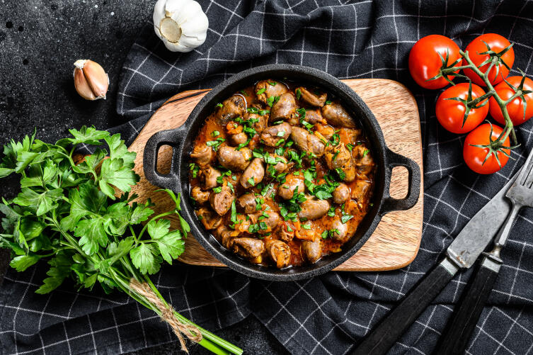 На гарнир могут быть отварные макароны, гречка, рис или картофельное пюре. Нежные сердечки как нельзя лучше подойдут к любому завтраку или ужину.