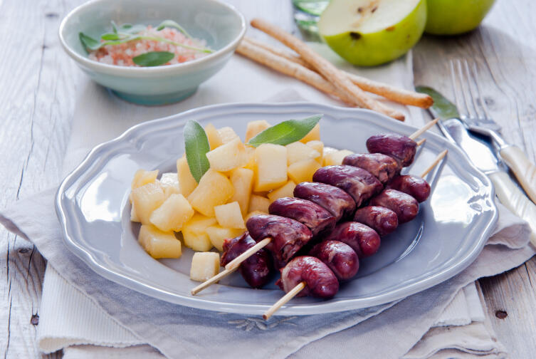 Шашлычки из сердечек. Если нанизать сердечки на шампуры и пожарить как классические шашлыки, можно получить отличное новое блюдо.