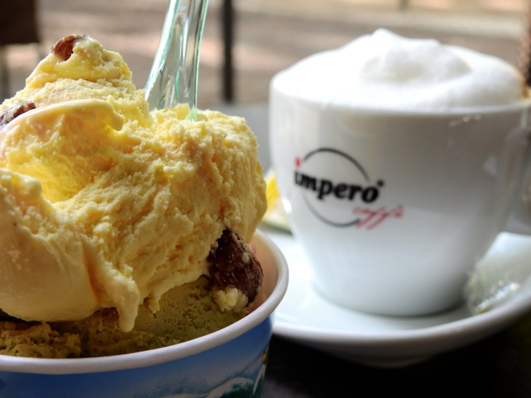Очень простой кулинарный рецепт у кофейного мороженого. Для этого банку сгущенного молока перемешайте с 250 мл крепкого теплого кофе. Когда смесь остынет, залейте ее в формы и поставьте в морозильник. На столе мороженое украшают вафлями и печеньем, подают в стаканах.