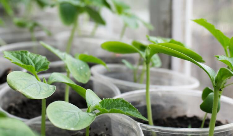 Проросшие семечки высаживают в стаканчик по одному на глубину около 1,5 см, накрывают пленкой и ставят в теплое место (23−25 градусов). Всходы появляются достаточно быстро, примерно через 3−4 дня, пленку снимают и оставляют рассаду по-прежнему при высокой температуре. А когда семядоли развернутся, температуру нужно на несколько дней снизить до 18−20 градусов, чтобы предотвратить вытягивание рассады.