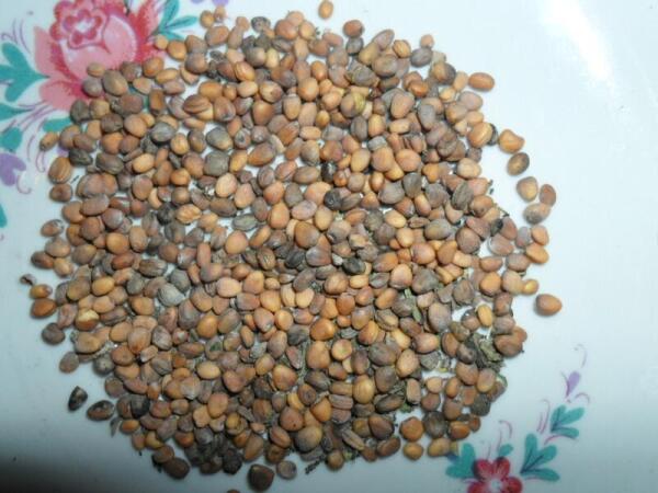 В сентябре приступаю к уборке семян. Сначала срезаю под корень всю семенную редиску и отправляю ее на просушку на чердак недели на две. После того как стебли и стручки высохнут так, что при разминании в руках рассыпаются на мелкие кусочки, начинаю извлекать из стручков непосредственно семена. Сначала секатором отделяю крупные стебли от стручков и более мелких стеблей и выбрасываю. Затем в подходящем корыте ступкой аккуратно измельчаю все оставшиеся веточки со стручками до мелкой однородной массы, чтобы стручки полопались и раскрошились. Семена редиски довольно крепкие и от этой процедуры не повреждаются. Полученную размельченную массу заливаю водой, вся мезга из остатков стебельков и стручков всплывает вверх, а семена редиски опускаются на дно емкости. Всплывшую массу отправляю в компост, а ценные семена редиски еще раз промываю в чистой воде и рассыпаю для окончательной просушки на чистый лист фанеры.
