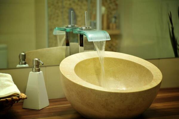 Рычажные смесители разнообразны и экстравагантны. Бывают, например, в форме блюдца, сделанного из цветного стекла, с регулятором посередине и встроенной подсветкой. Вода здесь течет прямо через край блюдца широким потоком. Оригинально смотрятся также смесители с высокими изогнутыми трубчатыми изливами. Для них лучше всего подходят накладные чаши-раковины из керамики или стекла.