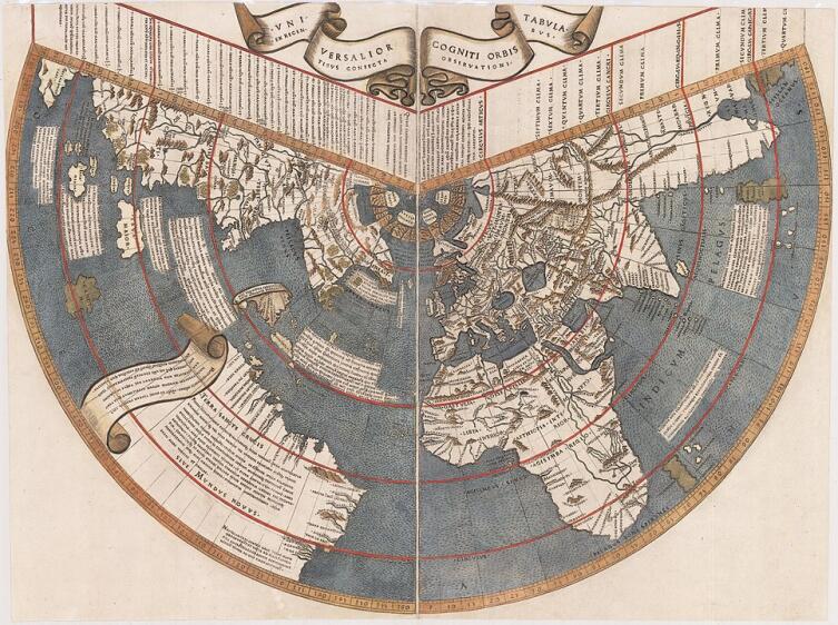 В 1507 году появляется карта мира Иоганна Рейша (Johannes Ruysch), которая была сделана в проекции Птолемея. В ней были зафиксированы открытия Христофора Колумба и Марко Поло.