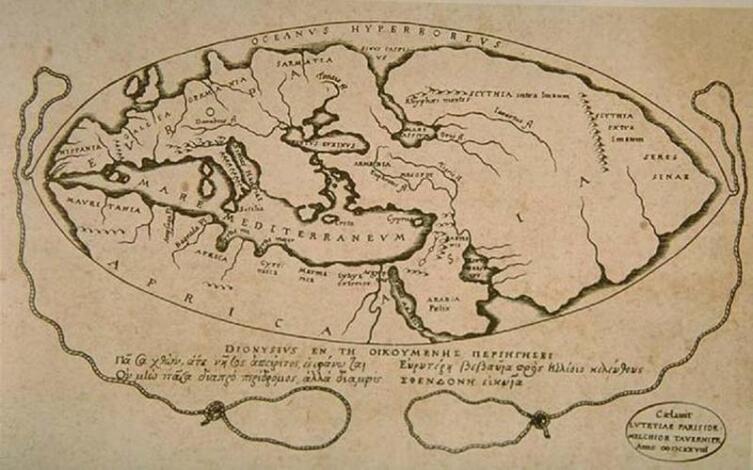Известна карта Анаксимандра, греческого философа из Милета, который оставил свою карту мира, где центром было Эгейское море, а вокруг Греции и прилегающих к ней Европы, Азии и Ливии был океан.