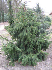 Есть группа елей восточных, пусть и «растрёпанной» формы с просветами, но весной у них молодой прирост жёлтого цвета. Есть невероятно пышная и широкая, с длинными ниспадающими ветвями ель бревера (пивовара). Есть ещё несколько сортов шаровидных карликовых форм, а у конусной «Коники» есть сизая форма — «Сандерс Блю», есть даже колонновидная форма «Купрессина»!