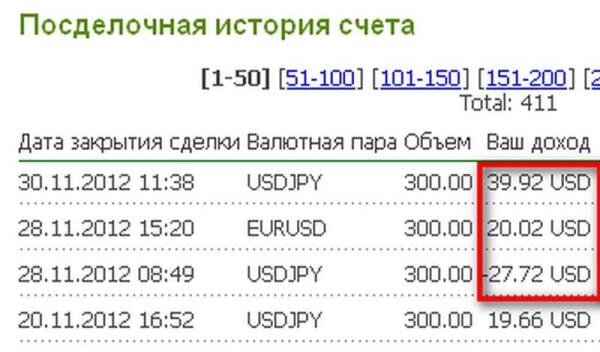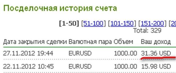 Если по доходности агентской системы я пока ничего не могу сказать, то итоги прошедшего месяца таковы: в целом по двум ПАММ-счетам моя прибыль составляет 87,28 $ (Рис. 5). Памм-счет veronika (7165) практически вышел из просадки, осталось всего 9,12 $, чтобы можно было говорить о прибыли. Доходность по ПАММ-счету sven (7031) составляет 96,40 $, из которых 31,36 $ (Рис. 6) он принес мне на этой неделе. Вероника провела три сделки, из них две закрыла в профит (Рис. 7), в результате чего мой инвесторский счет в составе ПАММ-счета veronika (7165) пополнился и стал на 32,21 $ тяжелее. На данный момент вложенная мною сумма принесла более 4% дохода, что на мой взгляд совсем неплохо. Как пойдут дела дальше, прогнозировать я не берусь, пока же меня все устраивает.