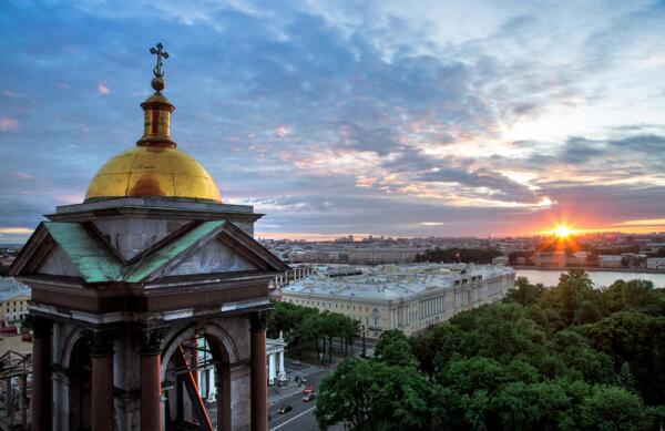 Купол Исаакиевского собора — самый большой позолоченный купол в мире. На него израсходовано 100 кг золота (для сравнения: на золочение шпиля колокольни Петропавловского собора потрачено всего 8 кг). Золочение выполнялось огневым методом: на медные листы наносили сплав золота с ртутью, называемый амальгамой, а затем, нагревая листы, выпаривали ртуть. При этом атомы золота проникали внутрь медных листов и закреплялись в них навечно.