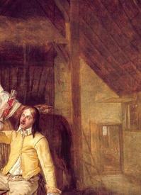 Сейчас офицер (красноносый) допьет мензурку, наденет то, что снял перед пьянкой, выведет коня из конюшни и поведет своих солдат на плац. А кирасир (очень может быть, это — ближайший помощник и друг командира, по совместительству — собутыльник) успеет договориться со служанкой обо всем, о чем хотел договориться (иначе зачем было рисовать сеновал?).