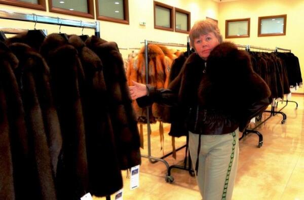 Светло-коричневый (орех) цвет — самый недорогой. Махагон (темно-коричневый), черный — немного дороже. Белая норка, голубая, графит — дорогие шубы. Крестовки (скрещенные норки) — тоже дорогие. Все светлые оттенки относят к дорогим. Очень ценны сочетания мехов. Вставки — соболь, рысь, шиншилла. Баргузинский соболь — очень ценный мех. В рыси ценятся животики. Экс-шиншилла — тоже дорогой мех. Если провести рукой по меху и почувствуется холодок, то это и есть экс-шиншилла. На фотографиях — несколько шуб, которые мне понравились. Вот такая она — ярмарка-аукцион ЭДИКА.