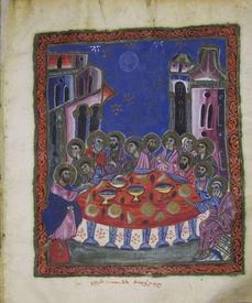 На фото лист Евангелие, 1336г, Сис, миниатюрист Саргис Пицак