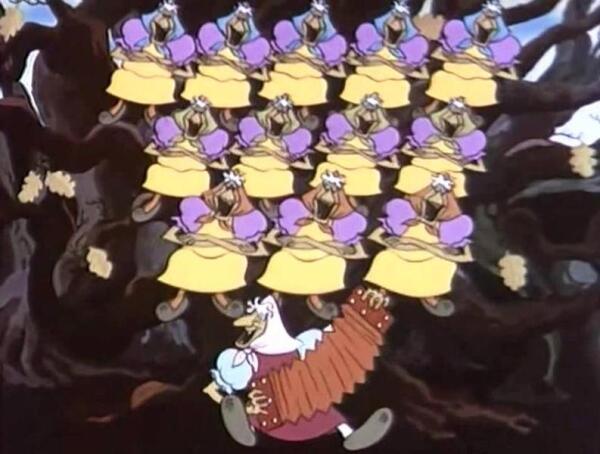 …когда режиссёр внезапно передумал, решив, что прикольнее будет выглядеть целый сводный хор Бабок-Ёжек. Арию пришлось убрать в стол, а вместо неё написать частушки — не менее замечательные.