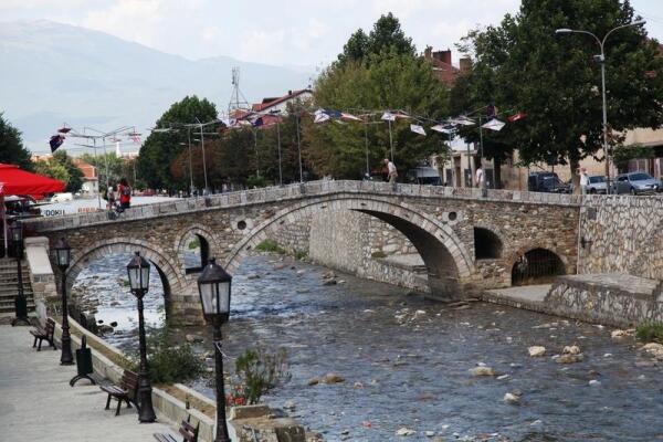 Впереди появился мост через реку, вот туда-то и повел нас за собой наш неутомимый гид. По пути попался сувенирный магазин, и мы решили забежать в него, может так случиться, что потом не будет времени купить какие-нибудь косовские сувениры. Магазин как магазин, ничем не отличающийся от других подобных по всему миру. Необычным показались лишь надписи на окнах, сделанные на трех языках: албанском, турецком и английском. Машинально при входе я поздоровался по-турецки, и тут же в ответ услышал турецкую речь. Вот это меня поразило. В Албании мне ни разу не удалось в ответ на турецкое приветствие услышать ответ. То ли там действительно не понимали меня, то ли они делали вид, что не понимают, но в ответ я не слышал ничего. В Призрене же со мной заговорили по-турецки.