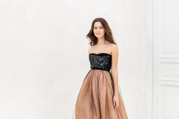 К платьям в пол можно использовать миниатюрные стразы. А тем, кто предпочитает более универсальные и практичные модели, стилисты предложили изысканные платья миди-длины. Наряд подойдет девушкам, предпочитающим активные танцы весь вечер романтическому школьному вальсу.