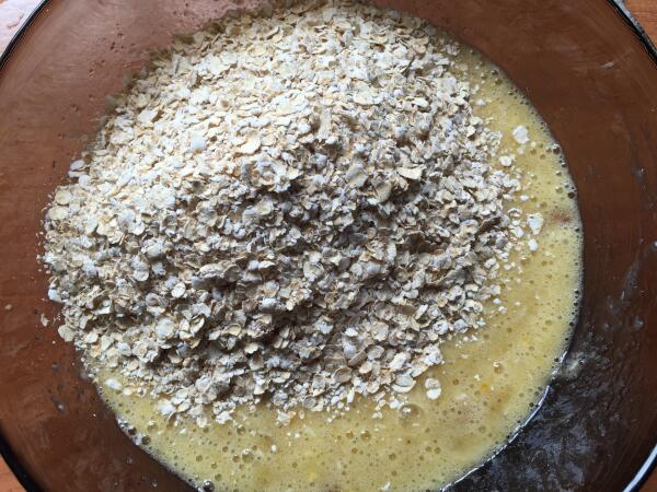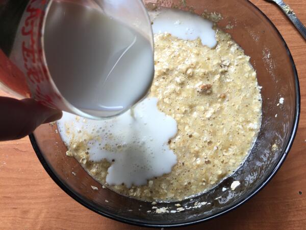 Хлопья добавляем вместе со всеми ингредиентами,добаляем их в сухом виде в самом конце или до добавления молока,сахара нужно половину стакана