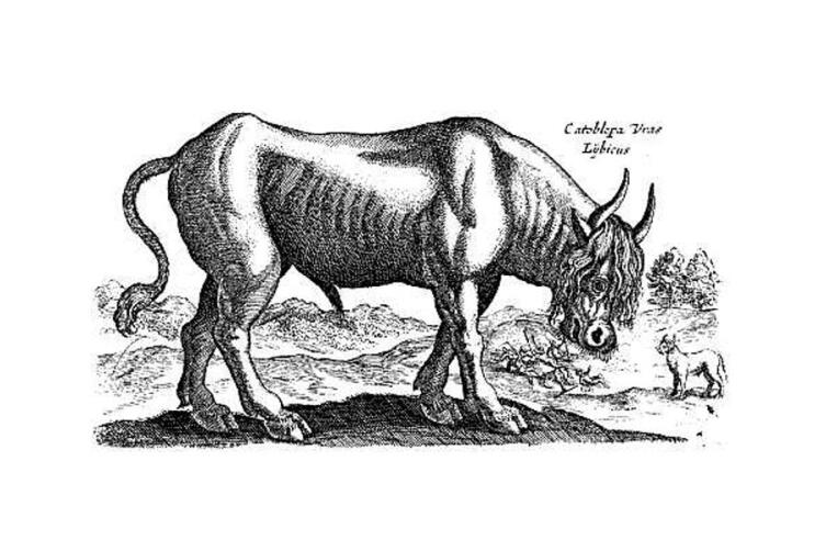Слава богу, что мы не встретились с Катоблепасом — мифическим быком, описанным в трудах Плиния Старшего и записках Леонардо да Винчи. Катоблепас якобы обитал в Эфиопии и носил на шее косматую гриву (наверное, в таком искажённом виде дошли до европейцев слухи об антилопе гну). Однако пугал этот бык вовсе не гривой, а смертоносным взглядом, от которого мог погибнуть и сам — даже посмотрев на своё отражение.