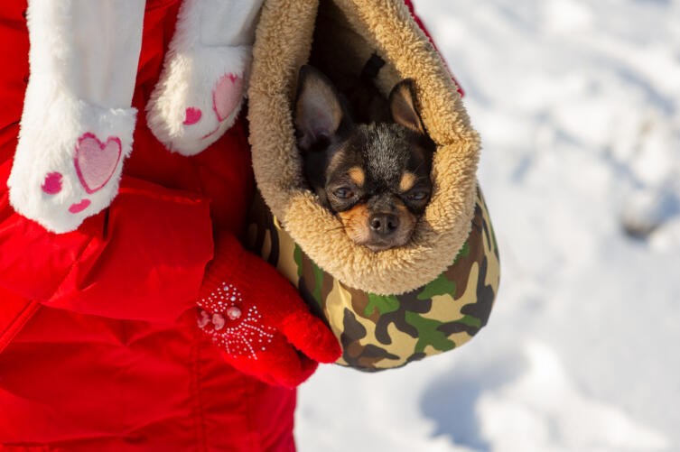 Собачья переноска — важный помощник во многих ситуациях, например, по дороге к ветеринару, при выезде на природу или перелете в другой город. Для тёплого периода подойдут пластиковые контейнеры для переноски собак (на дно всё равно нужно стелить лежанку). В холодное время — сумки для переноски. Контейнеры в это время года не годятся, потому что пластик быстро охлаждается.