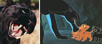 «Все в джунглях знали Багиру, и никто не захотел бы становиться ей поперек дороги, ибо она была хитра, как Табаки, отважна, как дикий буйвол, и бесстрашна, как раненый слон. Зато голос у нее был сладок, как дикий мед, капающий с дерева, а шкура мягче пуха».