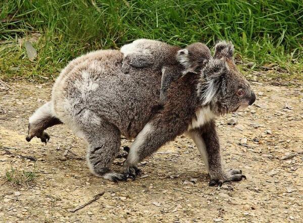 Вообще-то весь процесс размножения у коал не впечатляет. Созревают они поздно (где-то года в 3−4), а после 6 месяцев беременности на свет появляется всего один детёныш (редко — два), которого самка носит сначала в сумке, а потом на брюхе или спине.