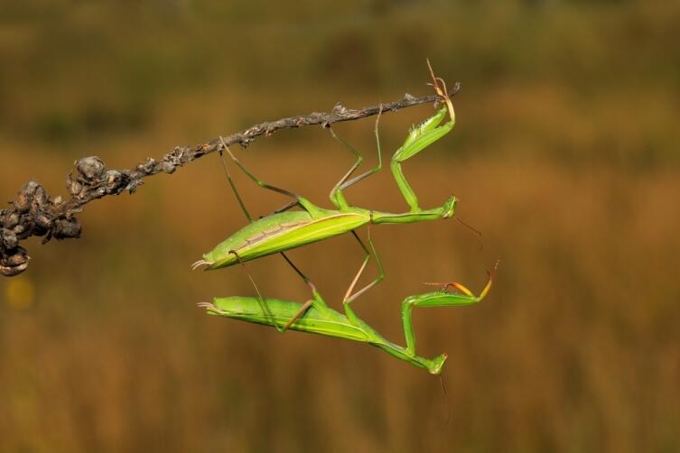 Впрочем, никакой тайны в его позе нет. Поднятые лапы помогают быстро ловить насекомых. Кроме того, богомолы ужасно прожорливы. Они поедают все, начиная от тли и заканчивая средними по размеру жуками. За год богомол съедает огромное количество насекомых, а иногда и проявляет склонность к каннибализму. Особенно прожорливыми богомолы становятся в брачный период.