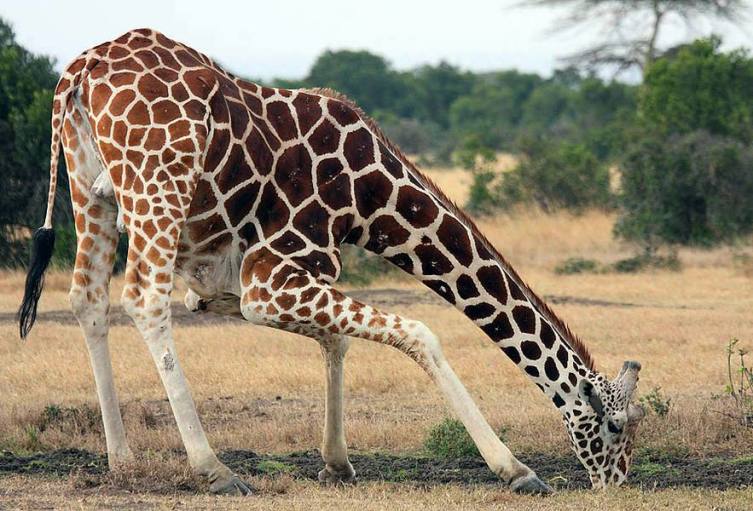 По той же причине самка жирафа во время родов вообще не ложится. Поэтому новорождённому жирафёнку приходится буквально падать на землю с двухметровой высоты. Чтобы не свернуть шею, дитя появляется из материнского чрева ногами вперёд.