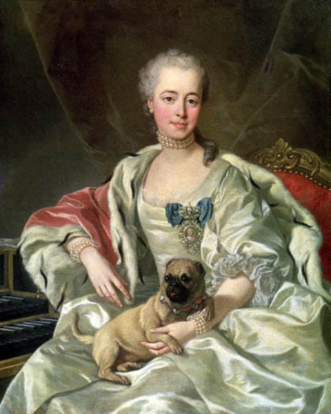 Когда король Вильям III Оранский в 1688 году воцарился в Англии, мода на королевскую собачку завоевала Британию. А после и всю просвещенную Европу. Мопсов можно было увидеть в королевских дворцах Испании и в царских покоях в Санкт-Петербурге. Естественно, что они стали домашними собачками и в благородных домах. В Италии мопсы сидели на передке карет знатных дам, наряженные в маленькие ливреи тех же цветов, что были у кучера. На многих женских портретах XVIII века мопсы находятся либо на руках хозяйки, либо у ее ног. Умиление этими забавными собачками в те времена было сродни нынешнему интернет-умилению котиками.