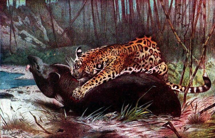 С «быком» Педро, правда, перестарался. Тапир, конечно, существо массивное (как ни крути, самое крупное млекопитающее Южной Америки), но всё-таки больше похожее на чрезвычайно упитанную свинью-рекордсменку весом 200−300 кг. Даже детёныши у них полосатые, как поросята дикого кабана.