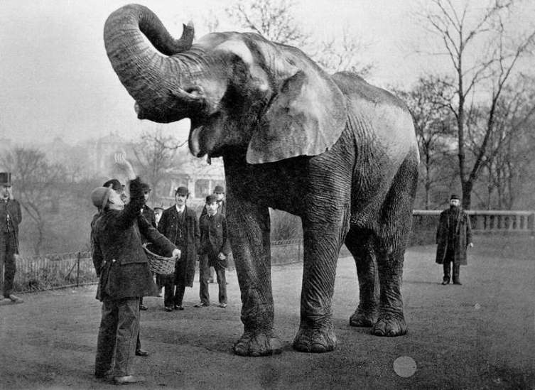 История слона началась в Судане, где он был пойман в 1862 году, Джамбо действительно был солидным экземпляром и к концу жизни достигал в высоту 4 метров. В США он попал далеко не сразу. Какое-то время слон пожил в Парижском зверинце, а спустя год переехал в Лондон. Там он обрёл огромную популярность — особенно среди детишек, которые частенько катались на его спине (в их числе был и Уинстон Черчилль).