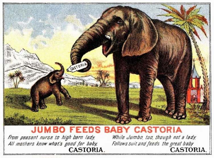 А вот другое творение инженерной мысли Джамбо погубило. 15 сентября 1885 года он вместе со своим «коллегой» — маленьким слоном по кличке «Мальчик-с-пальчик» — оказался на железнодорожных рельсах. По недосмотру, оба слона были сметены несущимся локомотивом и умерли. Чтобы выдавить из публики больше слёз, Барнум сочинил легенду, согласно которой Джамбо погиб героически — пытаясь спасти своего маленького собрата. Да ещё и какое-то время выставлял чучело слона вместе с живой слонихой, изображавшей «безутешную вдову».