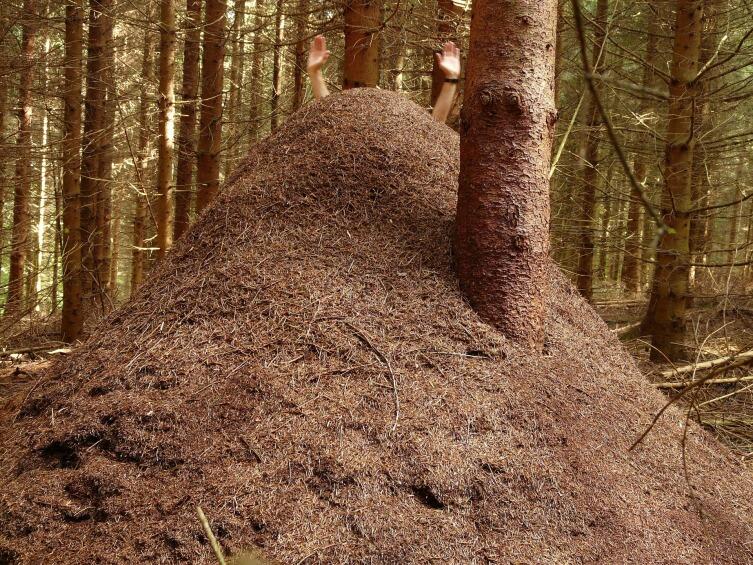Подойдите близко к муравейнику. Вы заметите, что муравьиная братия вас обнаружила и насторожилась, приняв боевую позицию. Кто-то даже попытался атаковать непрошеного гостя, выпустив струйку муравьиной кислоты. Постепенно труженики успокаиваются и перестают вас замечать.
