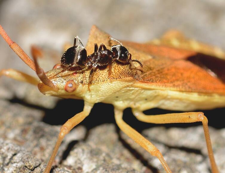 На самом деле он их не видит, а слышит издаваемые другими муравьями боевые запахи. Он учуял муравьиную кислоту и бросился на помощь своим собратьям.