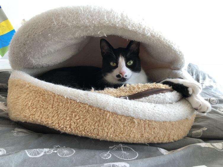 Понаблюдайте за новым котом и вы сразу поймете, где он предпочитает спать. Разложите там свой старый свитер (только не стирайте его). Кот должен привыкать не только к своему соседу, но и к вам. Так же поступите и с первым котом (надеюсь, старых вещей у вас в достатке). Через пару недель поменяйте свитера местами.