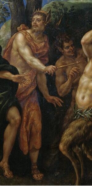 В это время Вакх, его покровитель, наказал виновниц, обратив их в деревья, а сам собрал компанию своих собутыльников — сатиров и вакханок. Кто потерялся по пьяни — Силен, его схватили крестьяне и притащили к царю Мидасу. Царь так обрадовался своему собутыльнику, что закатил пир на десять дней. И только после этого он отпустил Силена к Вакху.