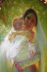 «Любящая мать». Напряженный взгляд, ребенок крепко прижат к груди. В широко раскрытых глазах тревога: может быть, ребенок болен и болен тяжело? (Нет датировки. Может быть, это портрет его жены Фернанды Каролины с дочерью?)