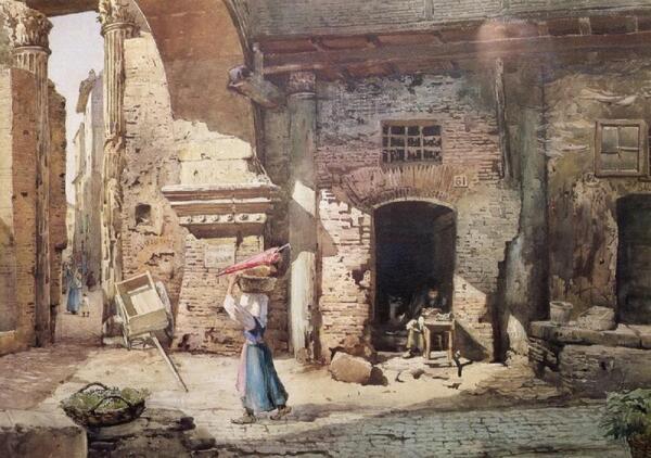 Портику Оттавия художник посвятил несколько работ: место было необычайно колоритным. Он его обрисовал, можно сказать, со всех сторон.