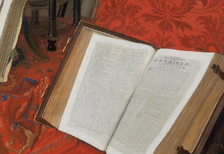 В этой работе — своего рода повторении его ранних натюрмортов — подчеркивается бренность сущего: Библия открыта на странице «Экклезиаст, Коэлет» (в русском переводе «Книга Экклезиаста или Проповедника»). Четко видно название книги, которая начинается словами: «Суета сует — все суета».