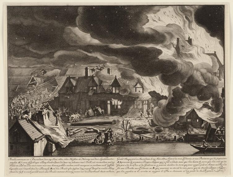 Самые ранние работы Яна ван дер Хейдена датированы 1663 годом. В молодости он был очевидцем пожара в старой городской ратуше, и это произвело на него сильное впечатление. Позднее он опишет или зарисует 80 пожаров в Амстердаме и его окрестностях.
