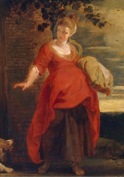 Две картины Рубенса показывают событие до рождения Измаила. На первой (по дате написания) — Аврам, Сара, Агарь. Солнце садится, холмы отбрасывают густую тень. На пороге дома — седобородый старец Аврам, рядом с ним Сара, его жена. Сара возбуждена, она настолько зла, что готова ударить Агарь и уже занесла руку. И поза у нее атакующая: левая нога несколько впереди, она подобрала платье, еще секунда — и она ринется на Агарь.