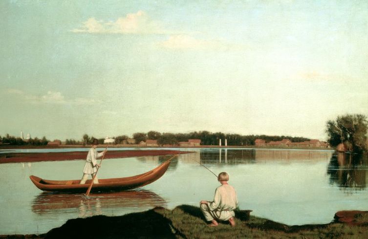 Другой ученик Венецианова, Григорий Сорока, тоже стремился писать «свою природу». Визитной карточкой художника стала картина «Рыбаки». Работа очень тихая по настроению и сбалансированная по композиции. В ней легко увидеть поэзию пейзажа: озеро рифмуется с небом, тени — с бликами, мальчишки в лодке и на берегу. Весло, опущенное в воду, не даёт всплеска, чтобы не распугать рыбу. Это не просто вид в селе Спасское, а некое идеальное представление окружающего мира. Такими были и другие пейзажи художника.