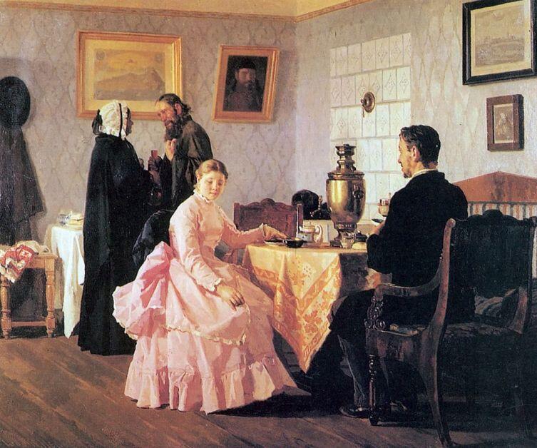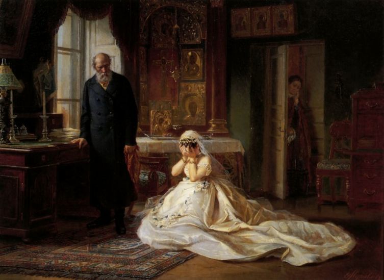Моя бабушка вышла замуж в конце 19 века. В 16 лет и без помощи свах. Она росла в бедной семье и не отличалась дородностью и пышными формами. Приданного не было совсем. Но она была красавицей и в нее влюбился парень из зажиточной семьи. Замуж бабушка выходила "убёгом". Если не было официального сватовства и сговора, то все расходы на свадьбу ложились на семью жениха. И вопрос о приданном не ставился. Родители жениха и невесты были в курсе предстоящего "убёга" и не возражали.