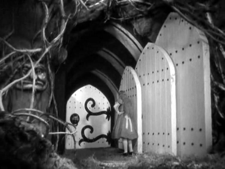 Спецэффекты в фильме почти отсутствуют (если не считать некоторых комбинированных съёмок). Не показано ни падение в нору, ни изменение роста. Режиссёр решает эту проблему, просто выбрасывая «неудобные» сцены. Алиса оказывается в Стране чудес с первых же кадров — будто по волшебству. После чего долго и нудно ходит по лесу и так же долго и нудно разговаривает сама с собой.