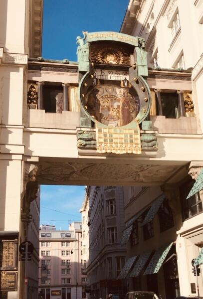 Каждый час появляется одна из 12-ти выдающихся личностей города Вены и 60 минут «проплывает» по циферблату. Затем сменяется другой личностью. Над головами человеческих фигур — римская цифра, обозначающая час. Еще выше — полоса с делениями от 0 до 60, которая показывает минуты.