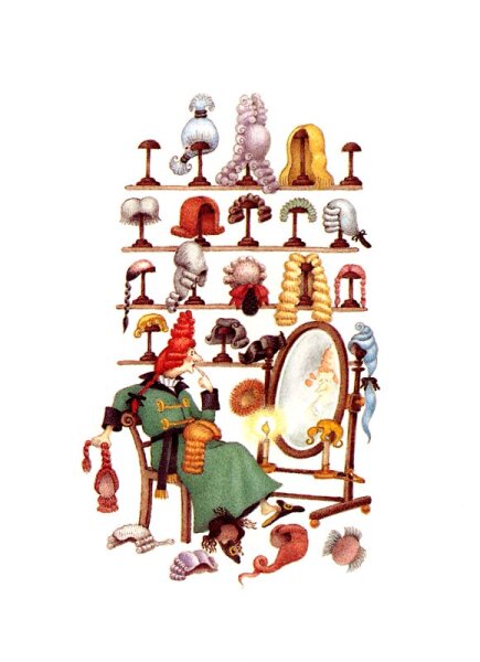Изобретательность стилистов XVIII века не сравнима с каким-то простеньким наращиванием волос в наши дни. Аристократки проводили многие часы в обществе своих стилистов, готовясь к придворным приемам. Часто сооружение прически затягивалось на несколько дней. Чтобы еще более поразить воображение и затмить соперниц, прическу затейливо украшали цветами, драгоценностями, фруктами, изящными вещицами вроде модели парусника и перьями экзотических птиц.