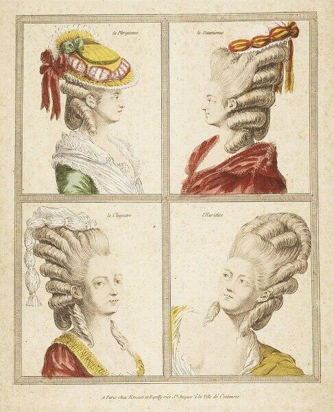 Что касается женщин, то они редко носили парики как таковые. Однако в кругу дам высшего света было невероятно модным создание причесок, в которых собственные волосы дополнялись шиньонами, а также такими предметами, как проволока, валики, специально сконструированные накладки, что делало собственные волосы шикарными и неотразимыми.