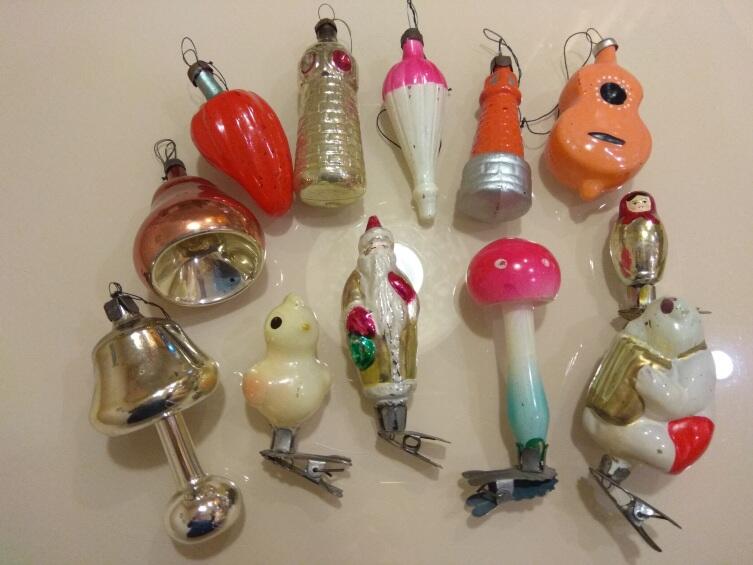 Старинные елочные игрушки заслуживают отдельного разговора. Известно, что вплоть до 60-х годов прошлого века в промышленности широко использовались так называемые светящиеся радиевые краски. Их применяли в судо- и самолетостроении, при изготовлении часов и елочных игрушек.