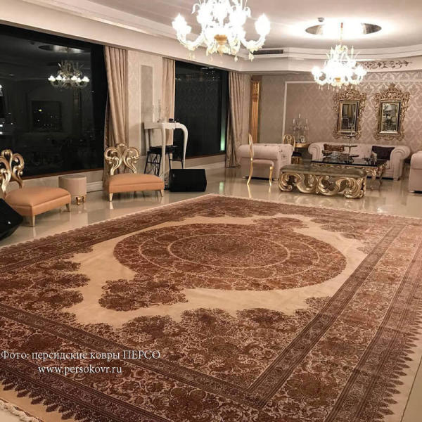 - Для больших помещений купите иранский ковер с выразительным, объёмным рисунком, для маленьких — с мелким рисунком или крупным, расположенным диагонально.