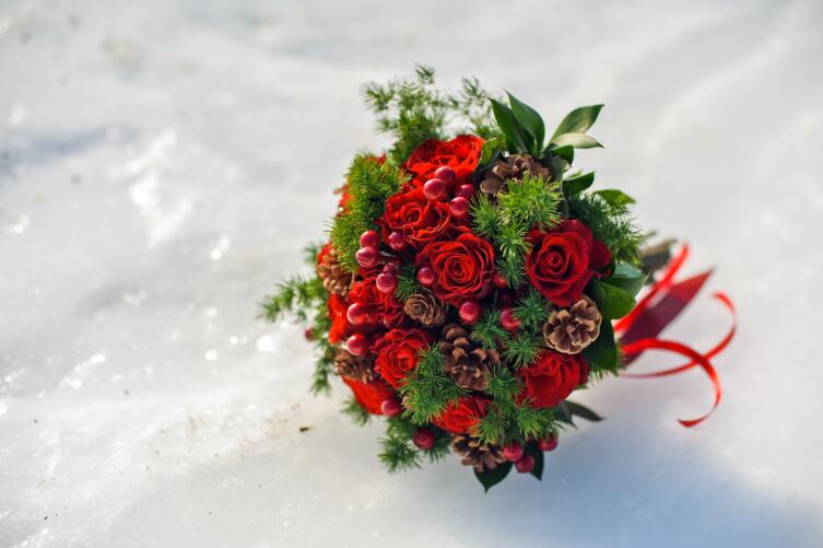 Этот уютный и необычный букет как нельзя лучше будет смотреться на зимней свадьбе. Он без труда перенесет непогоду и сильный мороз, при этом сохранится практически в первозданном виде. Шишки и хлопок в букете могут быть дополнены цветами, ягодами, плодами, хвойными веточками, каштанами, палочками корицы и так далее.