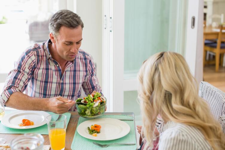 Хотя бы раз в день принимайте пищу вместе, всей семьей за одним столом. Ешьте медленно и размеренно, это непременно даст зеркальный эффект, ваши близкие тоже не будут торопиться, а насыщение придет от гораздо меньшего количества пищи.