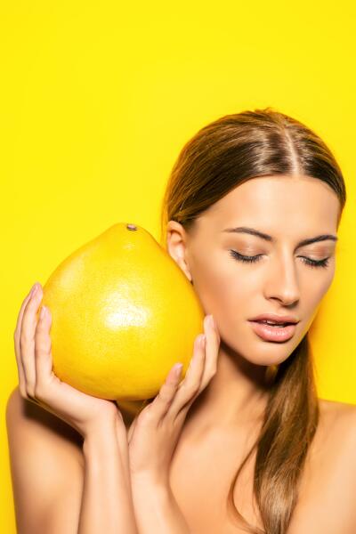 Не требуя, вопреки поговорке, жертв, помело улучшает кожу лица и укрепляет волосы. Замедляя накопление меланина в порах кожи, вещества, содержащиеся в плоде, предотвращают появление пигментных пятен.