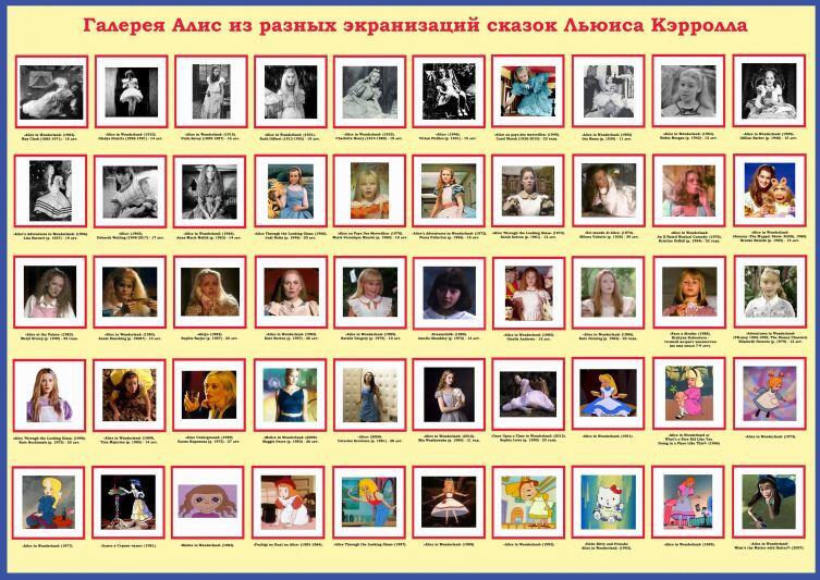 Более подробную и полную информацию об актрисах-Алисах и их возрасте вы можете узнать из составленной мною галереи (для того чтобы открыть картинку в реальном размере, пройдите по ссылке под картинкой).