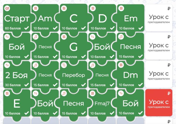 В сервисе Guitar-Puzzle все курсы четко структурированы, задания организованы наиболее эффективным образом, что позволяет максимально быстро научиться играть на инструменте. Все упражнения, представленные на платформе, позволяют развить необходимые навыки, информация подается в простой и доступной форме, а видеоролики длятся не более 5 минут.